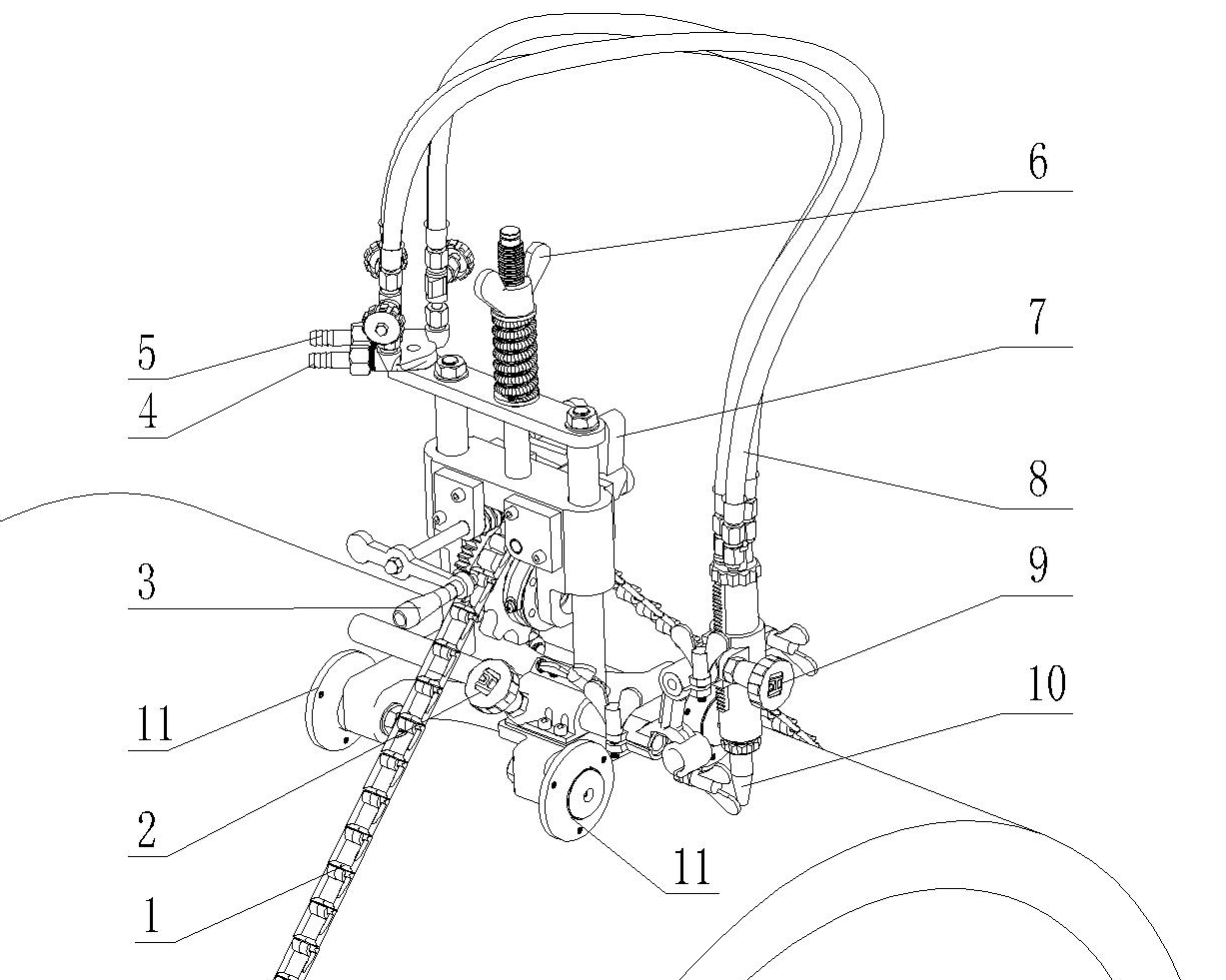 “CG2-11G”手搖式管道切割機是基于現場實際情況進行了徹底的調查后而設計開發的一種經濟,實用的管道切割機。該機器具有四只平行的行走輪,采用鏈條環繞鋼管鎖緊機器,通過手搖動方式運行機器。適合于108毫米以上大管徑無縫鋼管的切割。該機器結構獨特,操作簡便,易于維修,移動方便,切割輔助時間少。具有極高的可靠性。特別適用于野外無電源場所使用。該機器裝有鏈輪的托架,可沿兩根軸上下滑動用以調緊或放松鏈條的拉力。驅動鏈條采用雙接搭扣式結構,逐節串聯而成。根據管徑的大小,可以方便,快速的增減。
