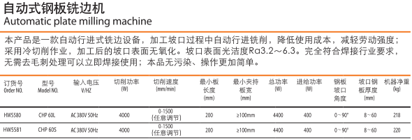 本產(chǎn)品是一款自動(dòng)行進(jìn)式銑邊設(shè)備,加工坡口過程中自動(dòng)行進(jìn)銑削,降低使用成本,減輕勞動(dòng)強(qiáng)度:采用冷切削作業(yè),加工后的坡口表面無氧化。坡口表面光潔度Ra3.2—6.3.完全符合焊接行業(yè)要求,無需去毛刺處理可以立即焊接使用:本品無污染,操作更加簡(jiǎn)單。
