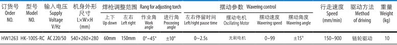 該機具有擺動功能,有不同規格的焊道方式可供選擇,以獲得最佳的焊接效果。擺動速度,擺動角度,中心偏移位置和左右停留時間均可方便的調整,數碼管顯示各種調整數據。較寬的軌道讓整臺機器的重心更穩定,軌道下裝有帶開關的永磁磁鐵,安裝移動更方便。驅動部分安裝了手動離合裝置,方便機器在軌道上快速定位,導輪也配有離合裝置,可以很方便的進行小車與導軌之間安裝與拆卸。可以進行垂直角焊和水平角焊,適用于加強件等的交叉部位的焊接。焊接不銹鋼或鋁材,可選用真空吸盤導軌。無線遙控操作更加省心省力,注:標配二根長度為2米的柔性導軌。