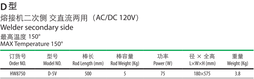 D型熔接機二次側交直流兩用。