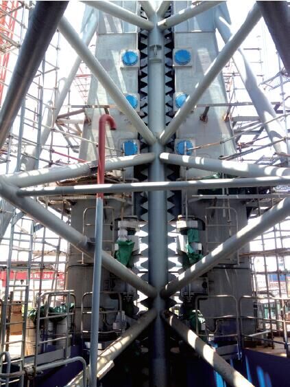 自升式鉆井平臺(tái)的樁腿部分支撐著整個(gè)平臺(tái)的重量,不但材料強(qiáng)度要求高,而且結(jié)構(gòu)設(shè)計(jì)上有大量的斜撐管,以增加樁腿部分的強(qiáng)度和穩(wěn)定性,滿(mǎn)足設(shè)計(jì)要求,如上圖所示。在直徑只有520mm,厚度為25mm、28mm、50mm主弦管上,密布了大量φ 114~φ 273mm、厚度不等的斜撐管,在局部區(qū)域節(jié)點(diǎn)多,焊縫密集,而且焊接需要單面焊雙面成形,這就對(duì)坡口的精密高效加工提出了要求。鋼管與鋼管在空間以一定角度交成的空間曲線(xiàn)(即相貫線(xiàn))坡口加工比較困難,傳統(tǒng)的手工加工方法不僅效率低,而且產(chǎn)品加工質(zhì)量很難得到保證,影響后面工件的焊接質(zhì)量和空間幾何尺寸。為此,我公司引進(jìn)了上海華威焊割機(jī)械有限公司的的XG-630數(shù)控相貫線(xiàn)切割機(jī),不僅提高了工作效率,而且保證了相貫線(xiàn)坡口加工質(zhì)量。